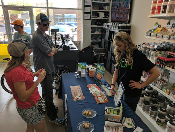 Various tables were set up throughout the store offering samples, including Generation UCAN's shown here.