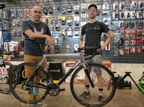 A constant stream of cyclists wheeled bikes in throughout the day for fits and service.