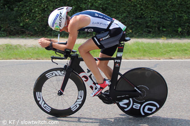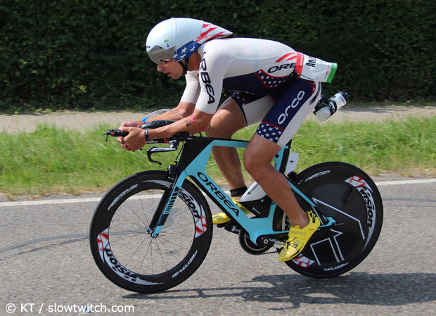 Andrew Starykowicz had a surprisingly slow swim and had to chase the front bunch.