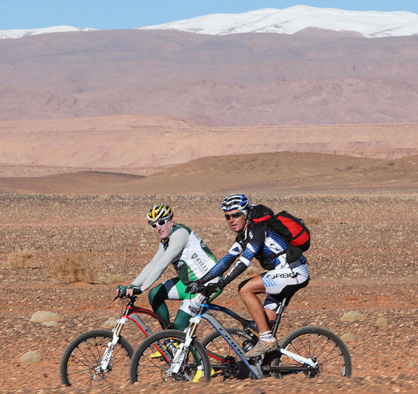 Juan Carlos shares a moment with Charles Aaron of Team OptumHealth. Snow had already fallen in the high Atlas.