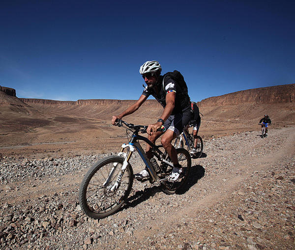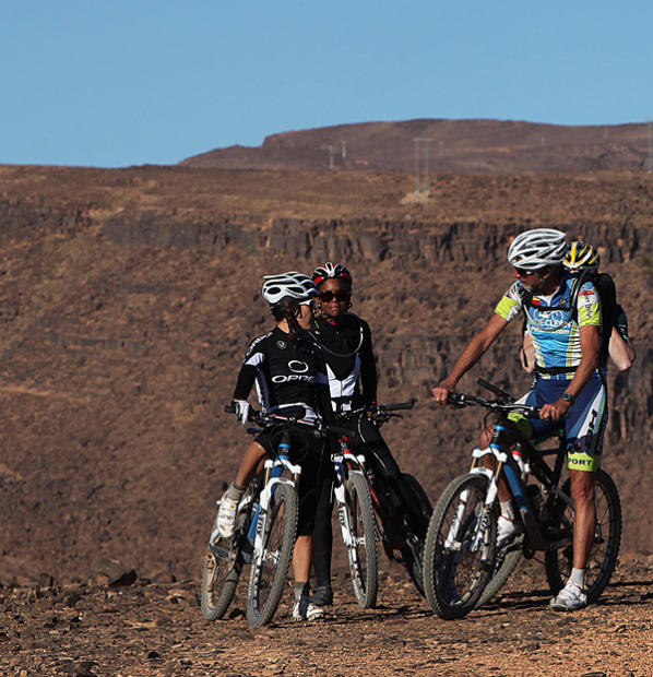 Then the old men, dressed in traditional djellaba robes, some with turbans, asked for a ride. Which they got. All the bikes came back, everybody was happy, altogether a successful cultural exchange. Orca/Orbea's Suzanne Karklins caught some of this on video.