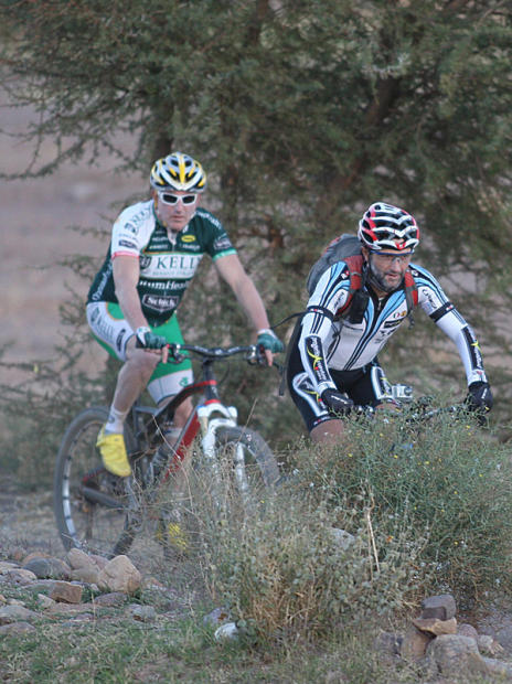 Orca/Orbea's Suzanne Karklins and Juan Carlos Nájera, side-by-side grinding it out.