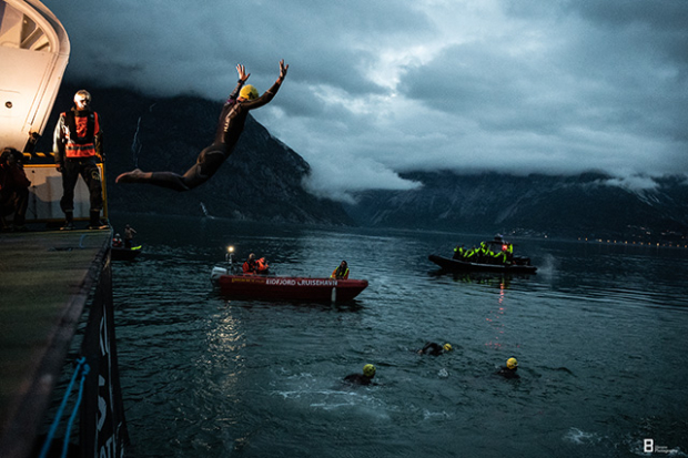 Earlier in the morning still tired athletes were quickly wide awake when they launched themselves from the boat that carried them to the swim start.