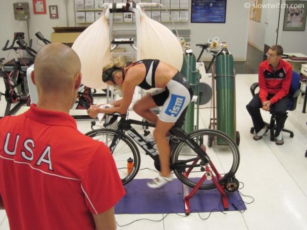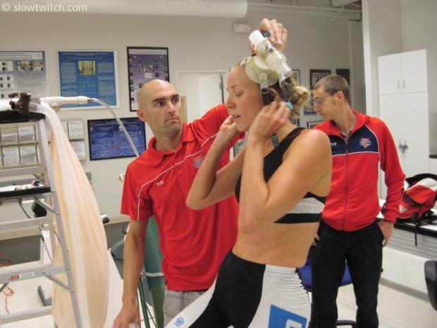 This specific workout session took place on Tuesday, July 31st, 2012, at the Olympic Training Center in Colorado Springs, CO. Sarah and Nate spend their winters in Clermont, FL for the warm weather, and the summers in Colorado for the altitude training. They’ve come to find over time, however, that Sarah still benefits from some sea-level training throughout the year. That’s not possible in Colorado Springs, so they use supplemental oxygen for these key sessions.