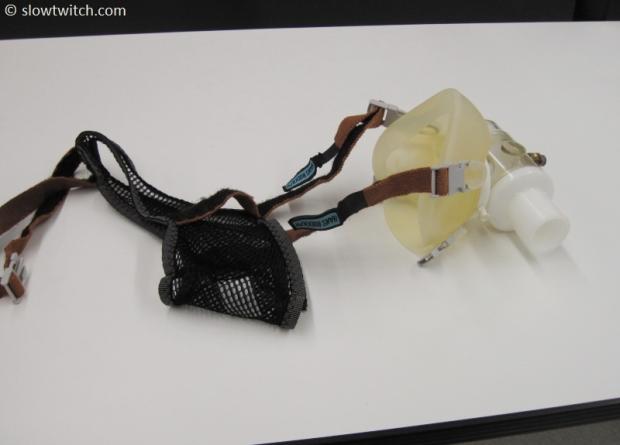 These balloon-like bags will fill with oxygen from the tanks. Sarah breathes from the bags, at a concentration that equates to slightly below sea level.
