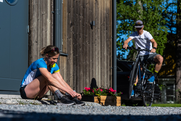Lisa: Obviously living in Sweden it ends up being a fair bit. I have a Wahoo Kickr set up in one of the bedrooms that we converted to a training room with the full Zwift set up. Lots of the quality workouts ends up being done in there. Unfortunately I do not have a treadmill but I can go to the local gym for when the roads are too icy or the cold is too brutal. Living in a semi attached wooded house I don’t think my neighbors would like me too much if I ended up running big sessions on the second floor. But in general – I’m trying to stay outside for as much as possible. I normally do a bit of cyclocross racing for intensity sessions and I’ll swap my road bike for an MTB for the long rides. It’s so much easier to stay warm at lower speeds in the forest.