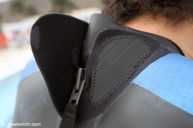 The super thin neoprene collar is very comfortable and it has the soft part of the velcro on the outside, unlike other wetsuits.