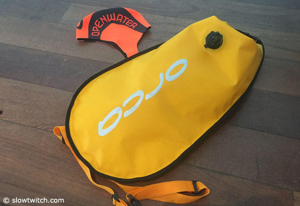A matching orange neoprene skull cap is also available and so is this new swim drag bag that allows you to schlepp your non swimming gear with you. The bag however is a prototype and will likely be orange like the cap and suit.