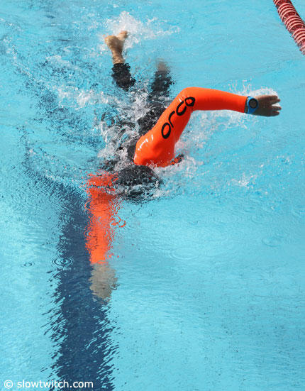 The 2015 Orca Alpha in action in the Olympic pool at Playitas. This suit is best for an athlete who is a great swimmer and comfortable in the water who would actually prefer to race without a wetsuit. The MSRP for this suit is $699.