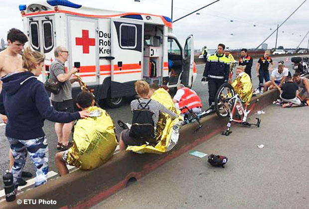 The race was marred by a serious bike crash that left two men with painful injuries and all four involved with broken bikes. Igor Polyanskiy of Russia suffered open fractures to his hand. Yegor Martynenko of Ukraine suffered a double fracture of his left clavicle and road rash. Ran Sagiv of Israel and Thomas Springer of Austria also DNF’d – Springer’s bike was trashed again soon after his crash at the Cagliari World Cup.