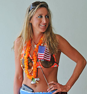 This 33-year-old massage therapist, 4-time Ultraman champion, 2006 RAAM solo woman winner, 3rd place in the 2008 Badwater ultra run, and a former Furnace Creek 508 cycling winner broke into Ultraman by taking down Tina Bischoff’s swim record in 2003, dropped her own a run from 9:05:23 in 2006 to 8:25:00 in 2007 and last year brought her Ultraman PR to within an hour of Tina Bischoff’s 1989 course record of 25:45:51. Armstrong anticipated a competitive boost toward the record from the return of two-time Ultraman women’s champion Monica Fernandez of Morocco, but Fernandez pulled out with pneumonia. A much improved Suzy Degazon, 44, finally cracked the 30-hour mark last year with a 29:46:49, but remained three hours behind the former Texas high school baton twirler.