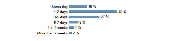 So, Lesson-1. Time is money. Not their time. Your time. Think about all the times you wait for your vendors to sell you something, or service what you bought. I’ll spend 45 minutes on the phone on hold waiting for my health insurance company. Sometimes 30 minutes for my wireless company. I took a poll last week asking Slowtwitchers: "Not counting ship time for an unstocked part few shops would reasonably stock, how long does your LBS take to finish a typical (less than 2-hour) bike service task from the time you request the service?”