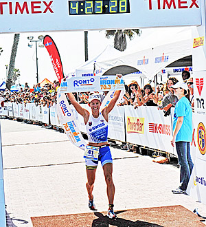Raelert, who scored a shocking upset with a sizzling 1:09:05 closing half marathon to win the Ironman 70.3 World title in November, won this one on the bike. Posting a dominating, race-best 2:15:31 split on a hilly course hit by cross and headwinds, the 30-year-old Raelert built a big lead on the Oceanside course that enabled him to cruise home with a 1:17:15 run that still left him with a 2 minutes, 50 seconds winning margin over the runner-up, defending champion Matt Reed.