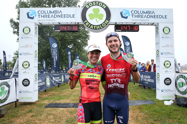 Kim Webster was at the pointy end of the field in the women's elite division. While female participation is hovering at 37% in USA Triathlon races, Boston is closer to 50% of the field. O'Neil deliberately positions Boston Tri as an inviting race to women. What does that mean? The race hosts social runs at health clubs, local bike and run shops and urges group training.