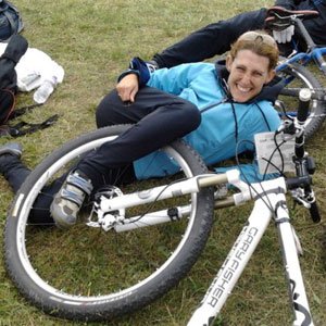 Megan: Yep. I have five. My husband is down to two and he was the one who encouraged me to start riding. Now he says he’s being forced out of house and home. I have a Schwinn Moab 26er; Gary Fisher Paragon 29er, Giant TCR Comp1, Specialized Transition, and a Fuji Track.