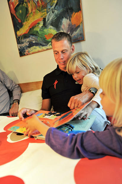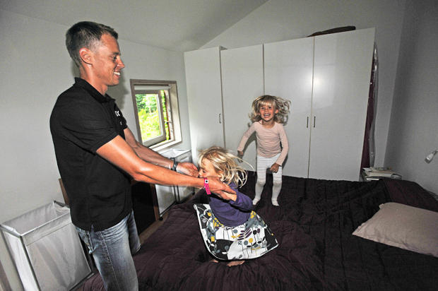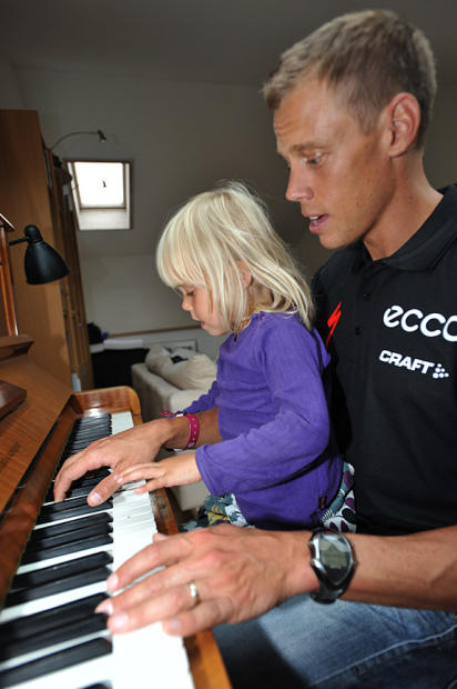Somehow, in this lovingly crafted rental home made of warm wood with airy skylights, painted in subtle, warm Scandinavian colors, adorned with bright paintings by Danish artists hung side by side with the girls’ cheery early works, the triathlon star finds peace apart from his rugged training.