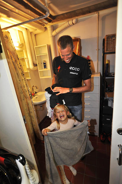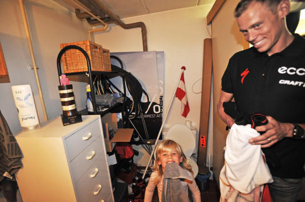 The winner of several of triathlon’s biggest purses and current contender for its most hallowed prize retains strong Danish values of modesty, thrift and a reverence for a loving family life. Henning balances in very equal measure a world class athletic career with time to nurture two rambunctious girls and appreciate his lovely and intelligent wife Anita. And until their new house is built, the Hennings manage to find just enough room for their bursting-with-life children to grow, for Anita’s kitchen and office for her teaching career, and to store Rasmus’ copious triathlon gear in a semi-orderly fashion.