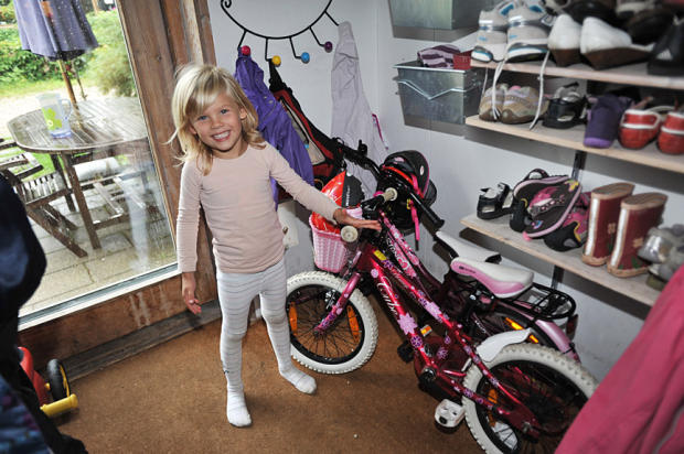 Caroline with the bicycle which she would ride in the Junior Challenge race. “A friend wrote on my Facebook that I should make sure that she finishes with a smile on her face — and she did,” says Rasmus. “This was my main criteria of success. So she was happy and I was very proud.”