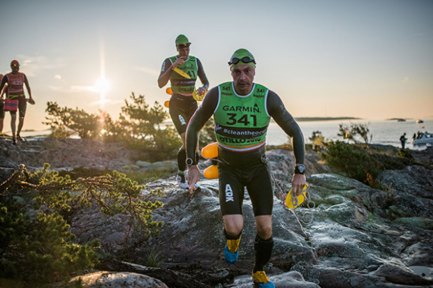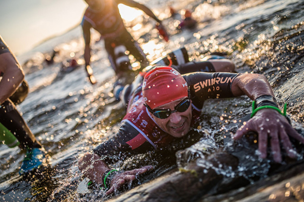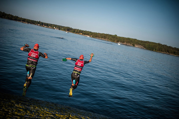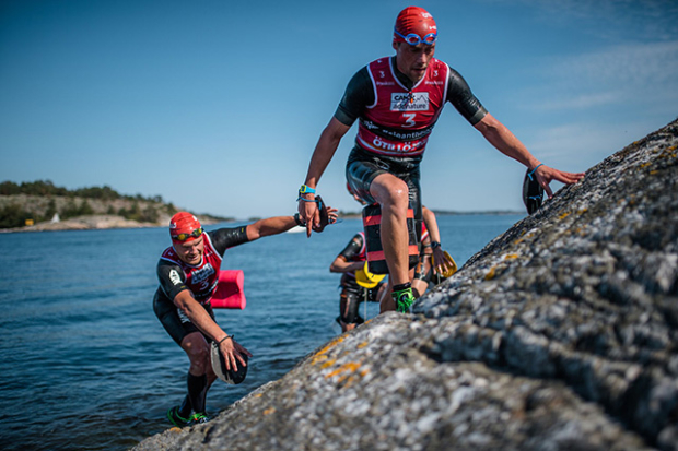 Fredrik Granström and Ludvig Myrenberg of Team Grinder Man seemingly played out their team name at one of the swim exits.