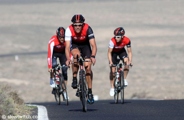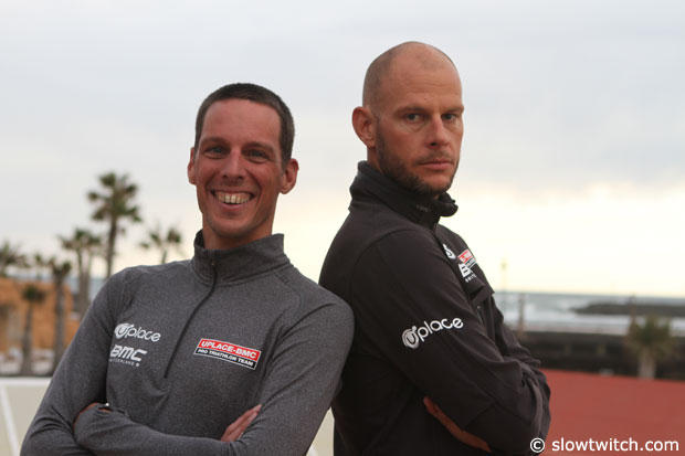 Slowtwitch: I am sitting here with Dirk Bockel and Axel Zeebroek who are part of the 2014 UPlace-BMC Triathlon Team and these two guys have actually more in common than this powerful new squad. Axel, let me ask you first since you have been with Uplace for a while, how surprising was it for you to see how big the team had grown?