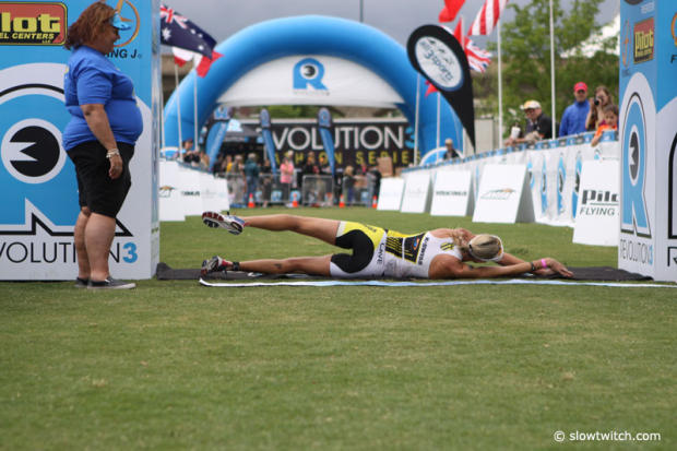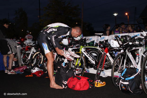 The early bird catches the worm indeed. Leanda Cave was the first Pro in transition right at 5:30am.