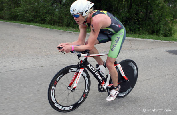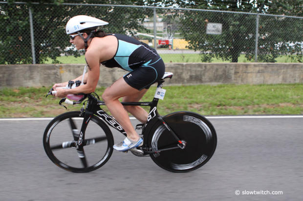 After taking a wrong turn Julie Dibens clawed her way back to come into transition in third place.