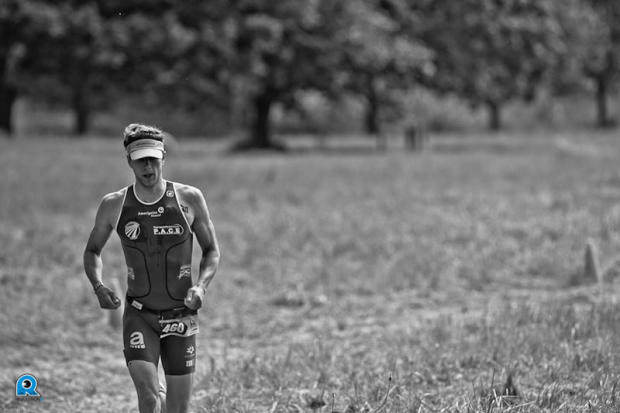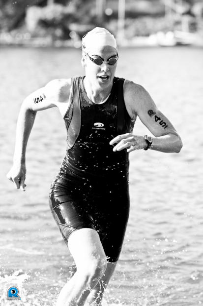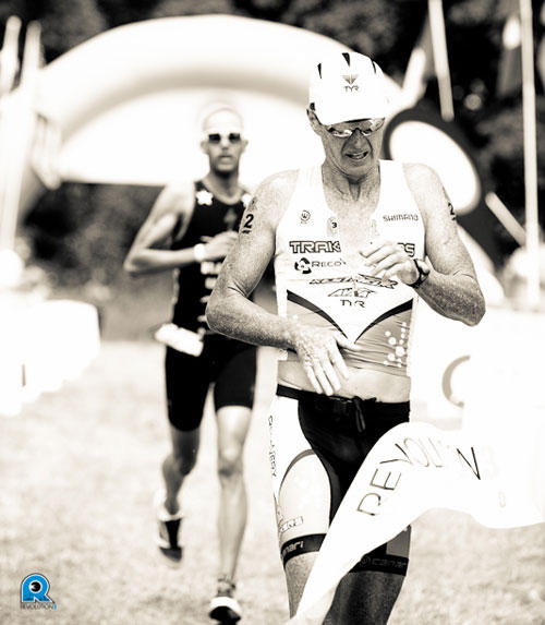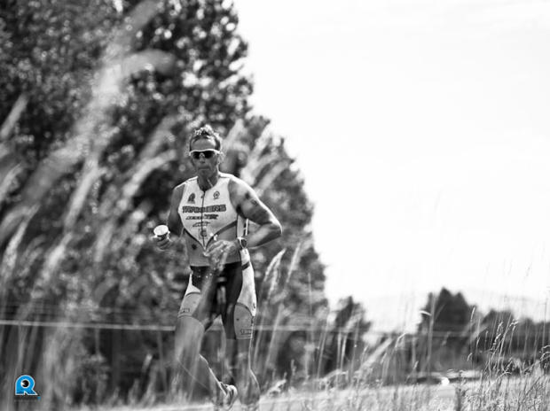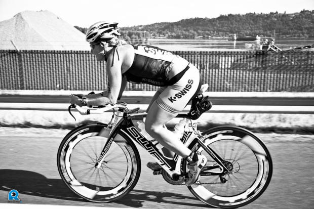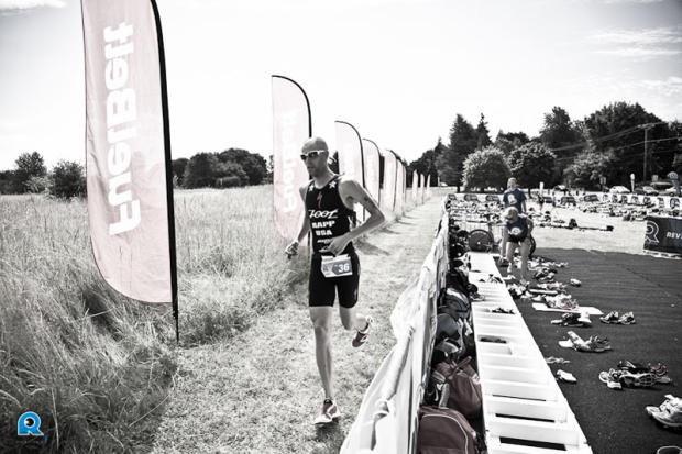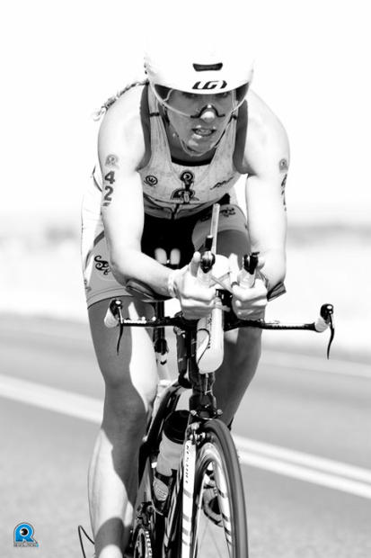 Jordan Rapp chasing the leaders after a slower swim without a speedsuit. He left his at home thinking it was going to be a wetsuit swim, but the water temp was warmer than advertised.