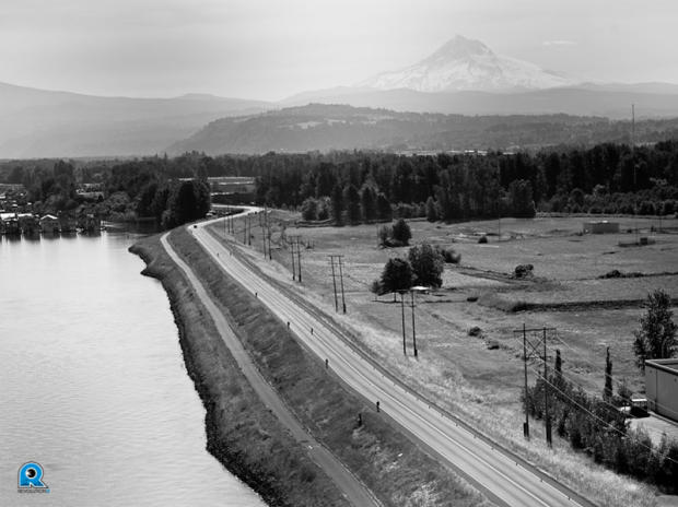 Nice perspective of the bike course with Mt. Hood looming in the background.