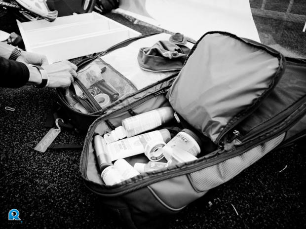 Jordan Rapp has quite the arrangement of gear and accessories to set up transition.