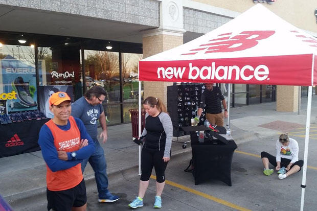 Adidas, Asics, Hoka One One and New Balance were all on hand to provide demo shoes for runners to use on the group run. Richardson Bike Mart staffer, Doug Jones, a multiple-time IRONMAN Hawaii competitor, waits for a few runners to lace up.