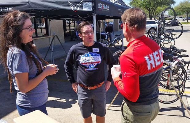Starting at 9am dozens of cyclists used Richardson’s Bike Mart as their launch point for a variety of ride options based on desired pace and mileage. Indeed, a microphone was needed to get the attention with so many cyclists on hand.