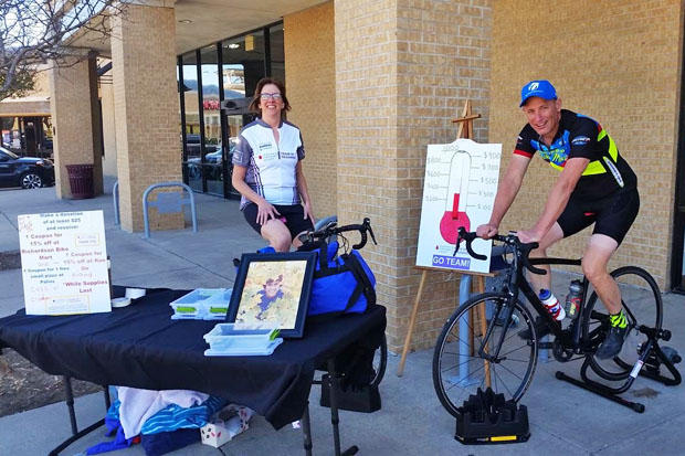 Julie and Mike Johnson started their trainer ride early and stayed throughout the day as the duo were fundraising for Team in Training and an upcoming circumnavigation of Lake Tahoe. Mike intentionally stopped his trainer ride at 99-miles, so his first 100-miler could be done around Lake Tahoe as part of the event.