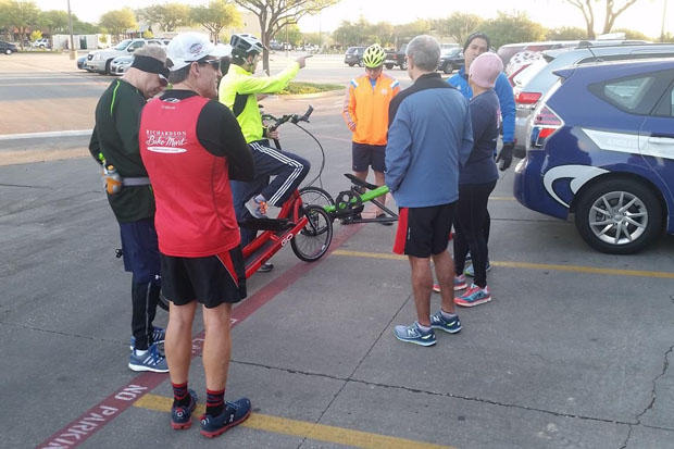 Runners were escorted from RunOn! on a 4.9-mile loop by a few ElliptiGo riders. The route went around the campus of University of Texas – Dallas.