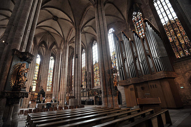 The magnificent Gothic Church of St. Sebald, which contains the relics of the saint in a silver coffin, and a gleaming, large deep-toned organ.