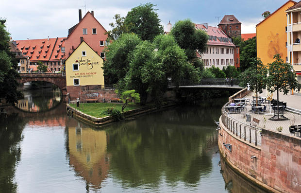Life along the sleepy Pegnitz River at the center of town.