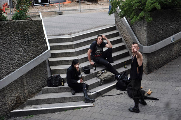 Three young metal aficionados regroup in downtown Nuremberg.
