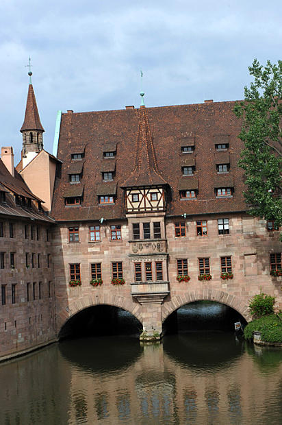 The 14th Century Hospital of the Holy Spirit stands in the center of town . One of the largest hospitals in the Middle Ages, it sits atop a bridge over the Pegnitz River. Today it is a combination old folks home and restaurant.So please excuse the occasional slow server…