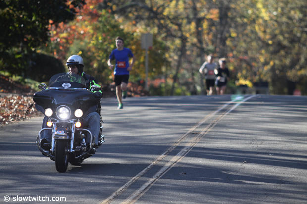 Two donut runners clearly marked by their red bibs led the field towards the halfway point.