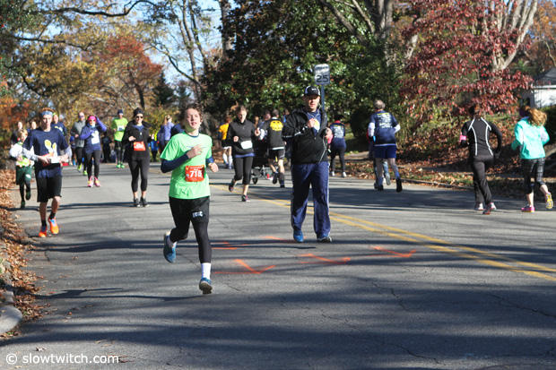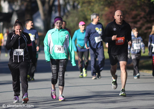 A donut runner refueled by 6 Krispy Kreme delights weaves through runners/walkers who avoided the sweet treats.