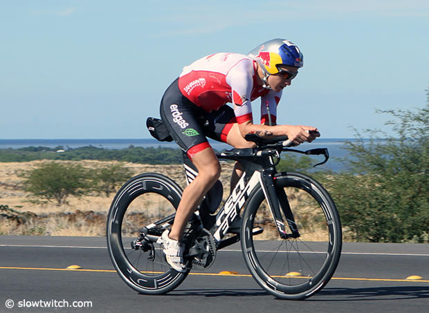 Kessler, on her Ventum, bolted to the lead, with Ryf tucked into a legal distance behind. Denmark’s Michelle Vesterby, 4th here last year, got itchy feet about a dozen miles into the bike ride and did what few people do: she passed Ryf, along with Kessler, and for a brief moment a pair of Cannondales led both the men’s (Potts) and women’s (Vesterby) race. Kessler and Vesterby took turns trading the lead early on with Ryf’s fearsome bike power held in abeyance for the time being.
