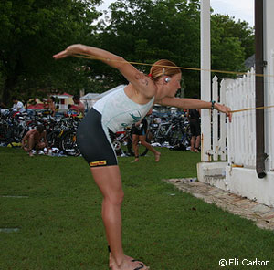 Samantha: I am not sure if my coach Cliff English will allow me to spill all the details but I train between 20-30 hours a week with 5-6 swims, 4-5 runs and 4-5 bikes. When preparing for Ironman I include a longer brick of 5-8 hours and then a long run the next morning to simulate the wear and tear of Ironman racing. In the regular season I do a lot more intensity than just straight volume. We really believe in sport specific quality training. I also like to do yoga 2-3 times per week and get massages at least once per week. I take a day off about once every two weeks and on alternate weeks I just take a light day with an easy swim.