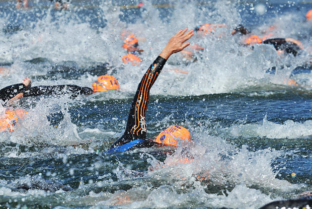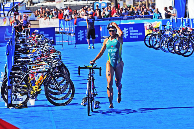 Emma Moffatt leaves T1 right behind Sarah Groff.