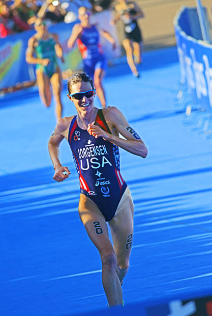 Gwen Jorgenson flew through the run for the win and posted a race-fastest 32:10 run