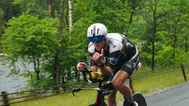 Arnaud Guilloux enjoying a moment on the bike before he started the run.