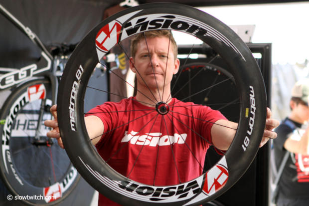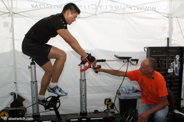 Dan Empfield early on during a road fit session in the Purely Custom booth.