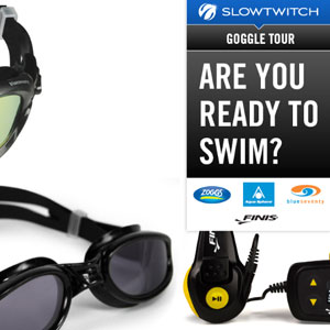This time around – this month and next – it’s goggles. The Slowtwitch Goggle Tour will stop at 36 tri, run and swim shops in 20 metro areas that specialize in goggles and swimwear.