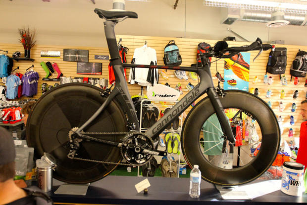 Most of the Pros brought their race bikes to the slowtwitch gathering and here is Kevin Taddonio's Shiv.
