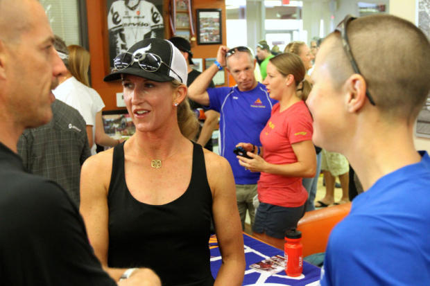 Meredith Kessler was among the many Pros present at Tribe Multisports with Jessica Smith in the background.