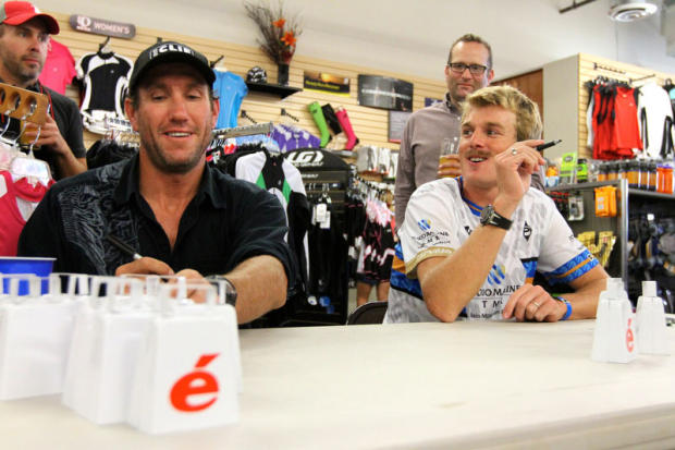 Bryan Rhodes and Tyler Butterfield signed Cervelo cowbells at the event. Tyler Butterfield also was clearly working on his Movember mustache.