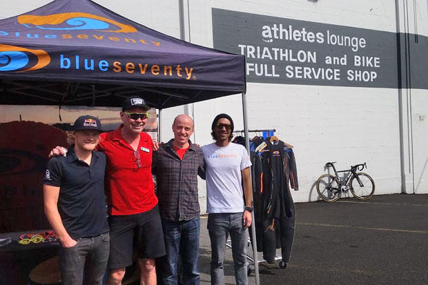 With an endless variety of friendly cycling roads and running trails, many top endurance athletes call Portland home. Eric Lagerstrom (far left), who cut his teeth as a shop kid in Athletes Lounge, fielded questions about his Road to Rio experience. American Mile Record holder Alan Webb (second to right) put his energies into learning the triathlon craft after injuries cut short his pro running career. Webb and Orton (far right) were childhood friends and competed on swim teams together.